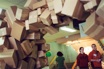 Animation de la création collective d’une structure architecturale symbolique -- une arche d’accueil monumentale faite par cumul de boîtes de carton -- pour orner et transformer un passage ou le hall de l’école.